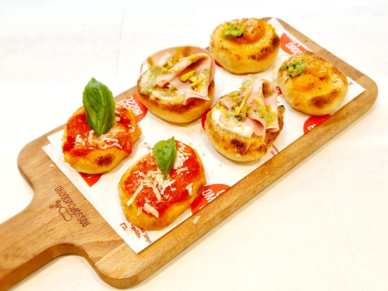 • pelati Rossopomodoro, ricotta di bufala e Grana Padano DOP • pomodoro datterino giallo, scaglie di cacioricotta e pepe 4pz.