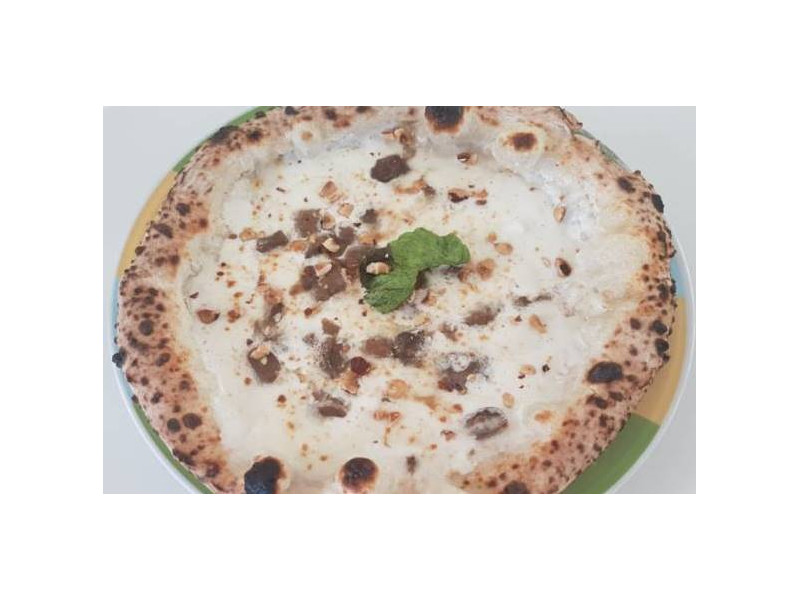 pomodoro, datterini gialli di Battipaglia, porcini trifolati, Grana Padano DOP e in uscita dal forno, Burrata Golosa di Puglia, prosciutto crudo di Parma DOP 18 mesi, rucola e noci
